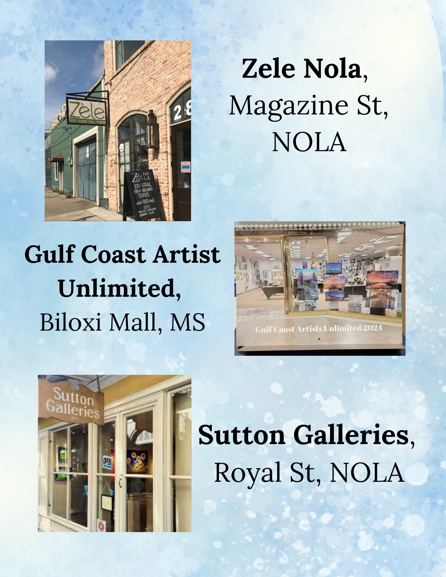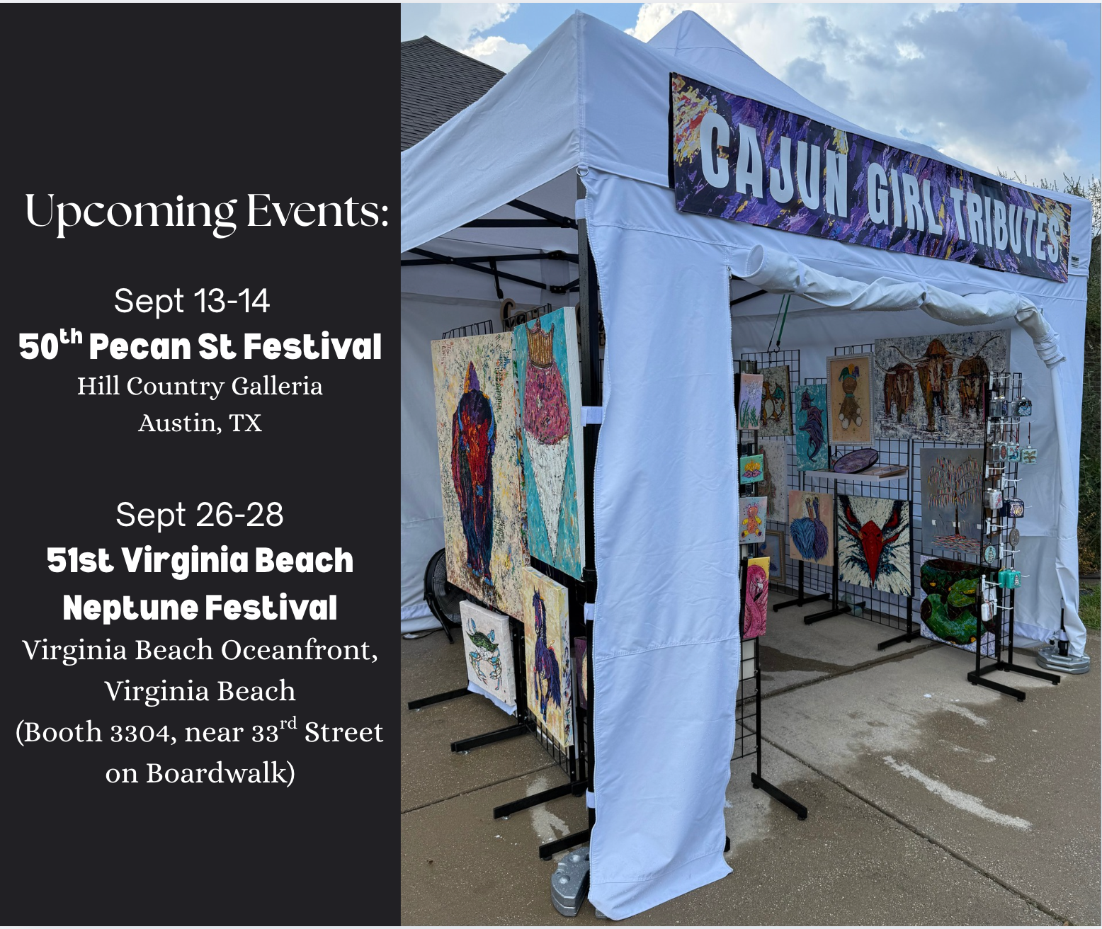 Cajun Girl is now in 3 locations across the Gulf States. Originals, Canvas Reproductions, Giclee Prints and the Merch can be purchased.